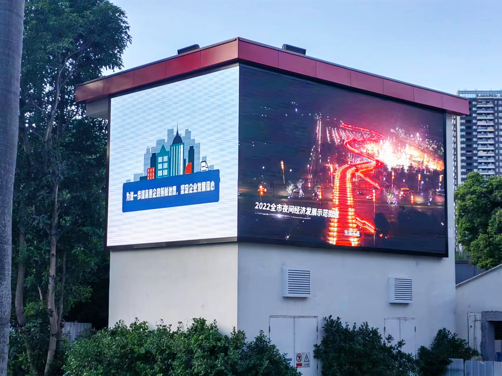 聯(lián)錦40平方Ti系列戶外LED顯示屏在光明虹橋1958創(chuàng)意園正式點亮,成為一道靚麗的風(fēng)景線。LED大屏與周圍環(huán)境交相輝映,喧鬧而不失文藝,沉穩(wěn)而不失煙火氣,無論白天或是黑夜,不同場景的多元化場景完美呈現(xiàn),為前來的消費者提供引人入勝、身臨其境的視覺盛宴。
