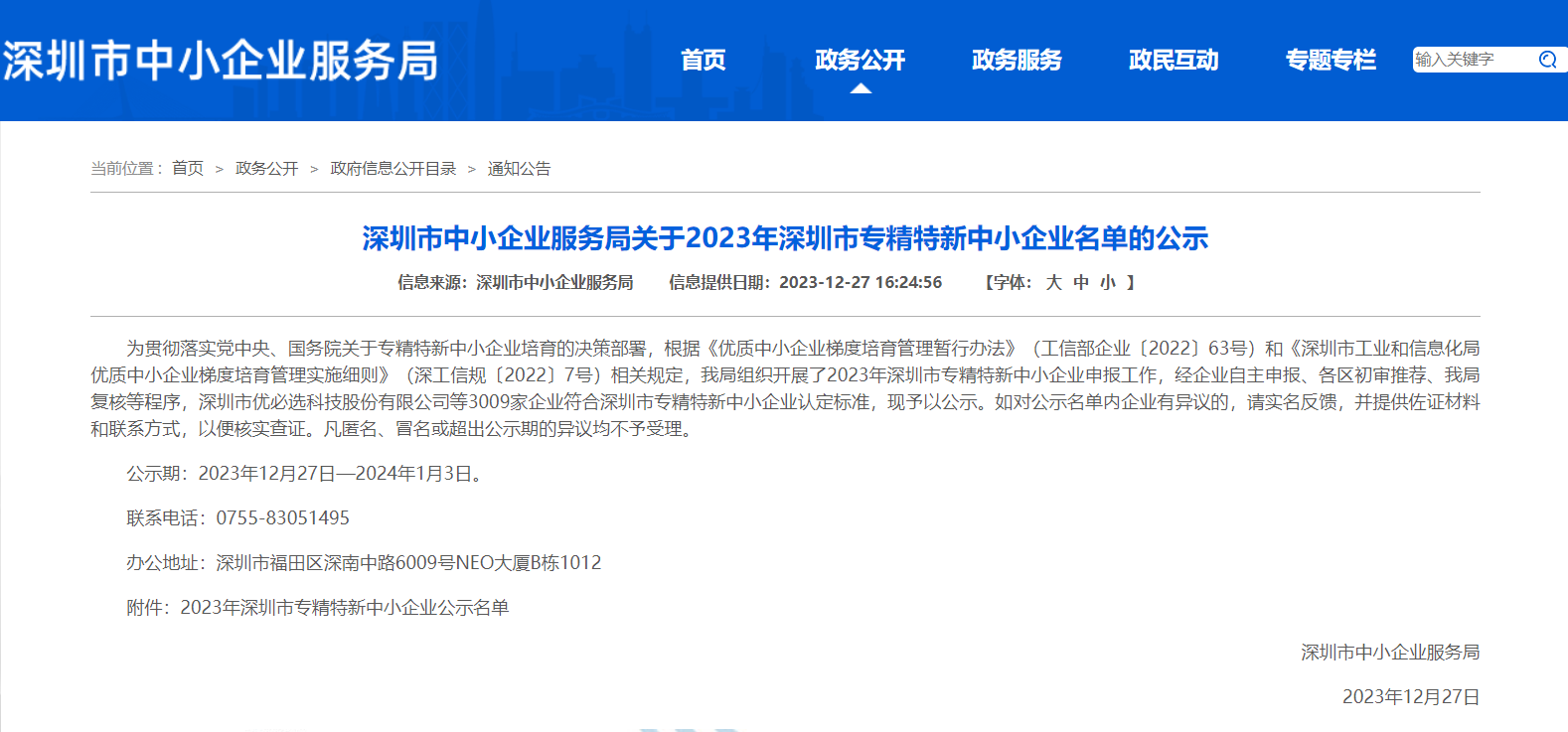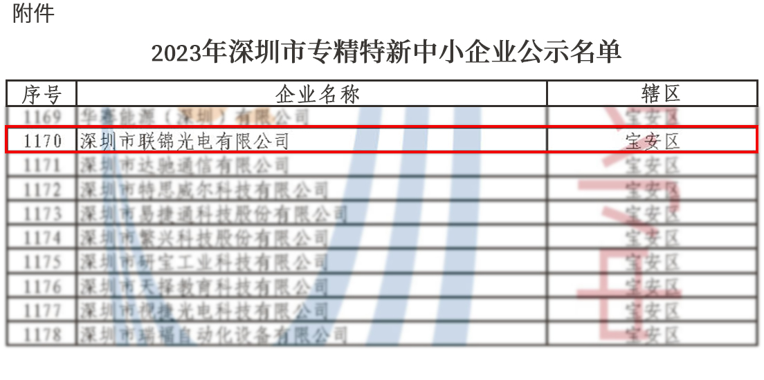 近日,深圳市中小企業(yè)服務(wù)局官網(wǎng)正式通過了“2023年深圳市專精特新中小企業(yè)”名單公示。經(jīng)過前期申報、初審?fù)扑]、政府復(fù)核等嚴(yán)格程序的遴選,聯(lián)錦從眾多參選企業(yè)中脫穎而出,憑借在LED顯示領(lǐng)域取得的優(yōu)異成績以及強(qiáng)大的自主研發(fā)與創(chuàng)新實力成功入選,榮獲“2023年深圳市專精特新中小企業(yè)”認(rèn)定。