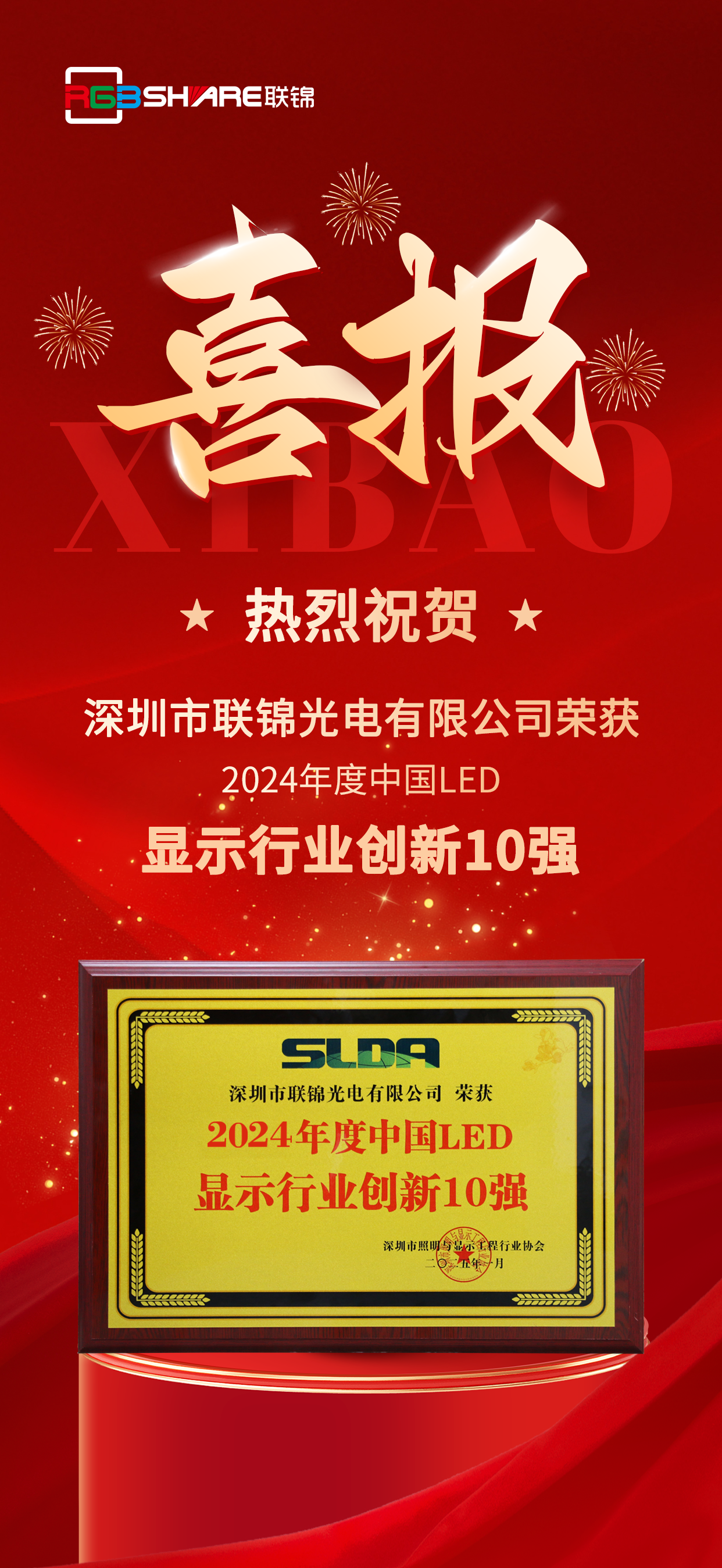 喜報(bào)!聯(lián)錦光電榮獲“2024年度中國(guó)LED顯示行業(yè)創(chuàng)新10強(qiáng)”!