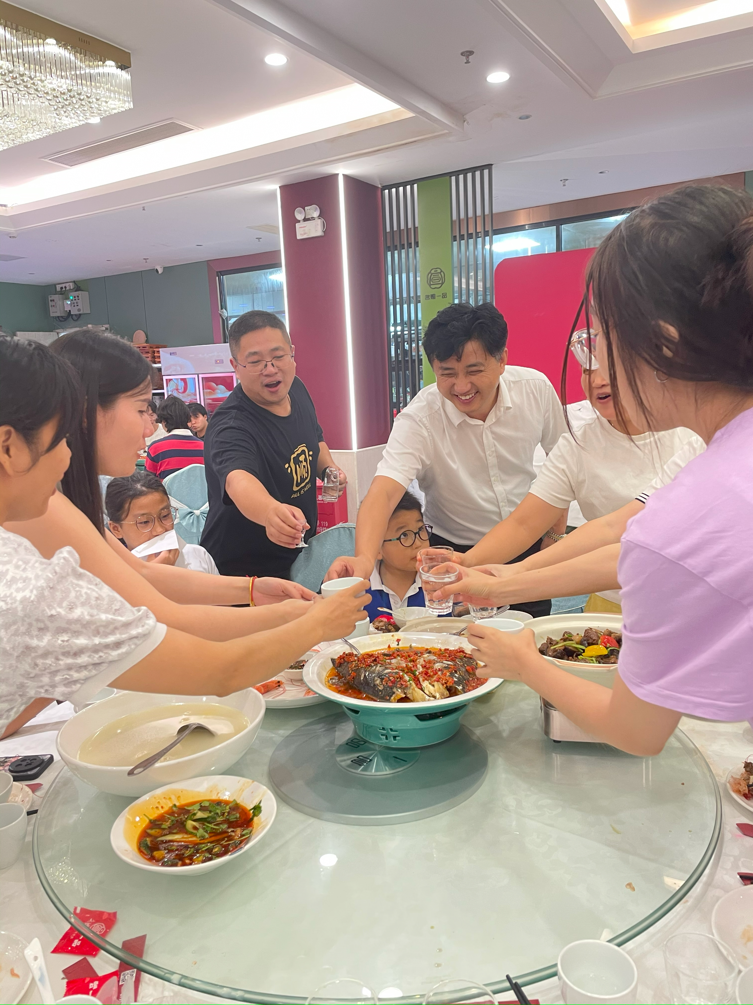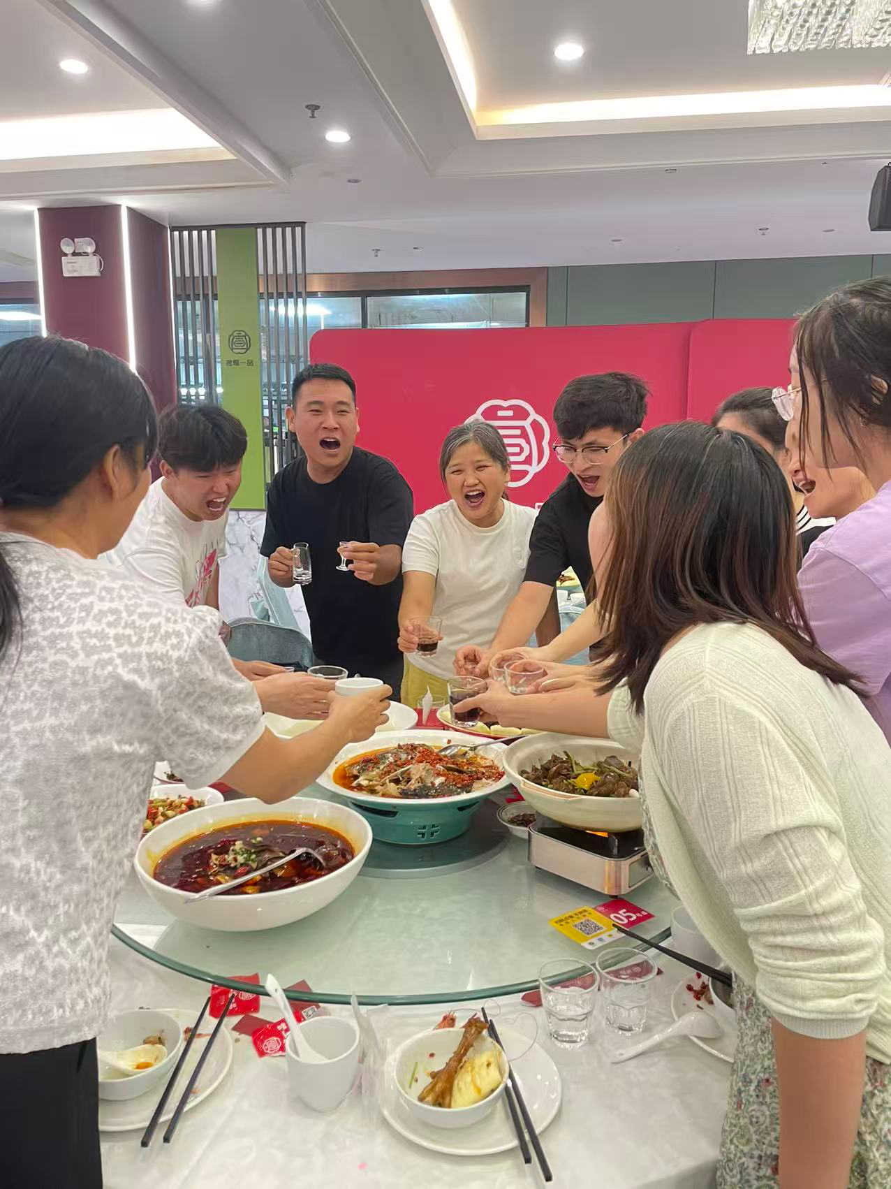 “舉杯邀明月,對影成三人。”晚宴不僅有美酒佳肴,更不乏溫情互動。劉總與領(lǐng)導(dǎo)們穿梭于各席之間,逐一向大家舉杯致意,與員工親切交談,傾聽心聲。每一聲問候都真摯暖心,每一次碰杯都寄托著對未來的美好期許。清脆的碰杯聲與歡快的笑聲此起彼伏,將晚宴的熱烈氛圍一次次推向高潮。