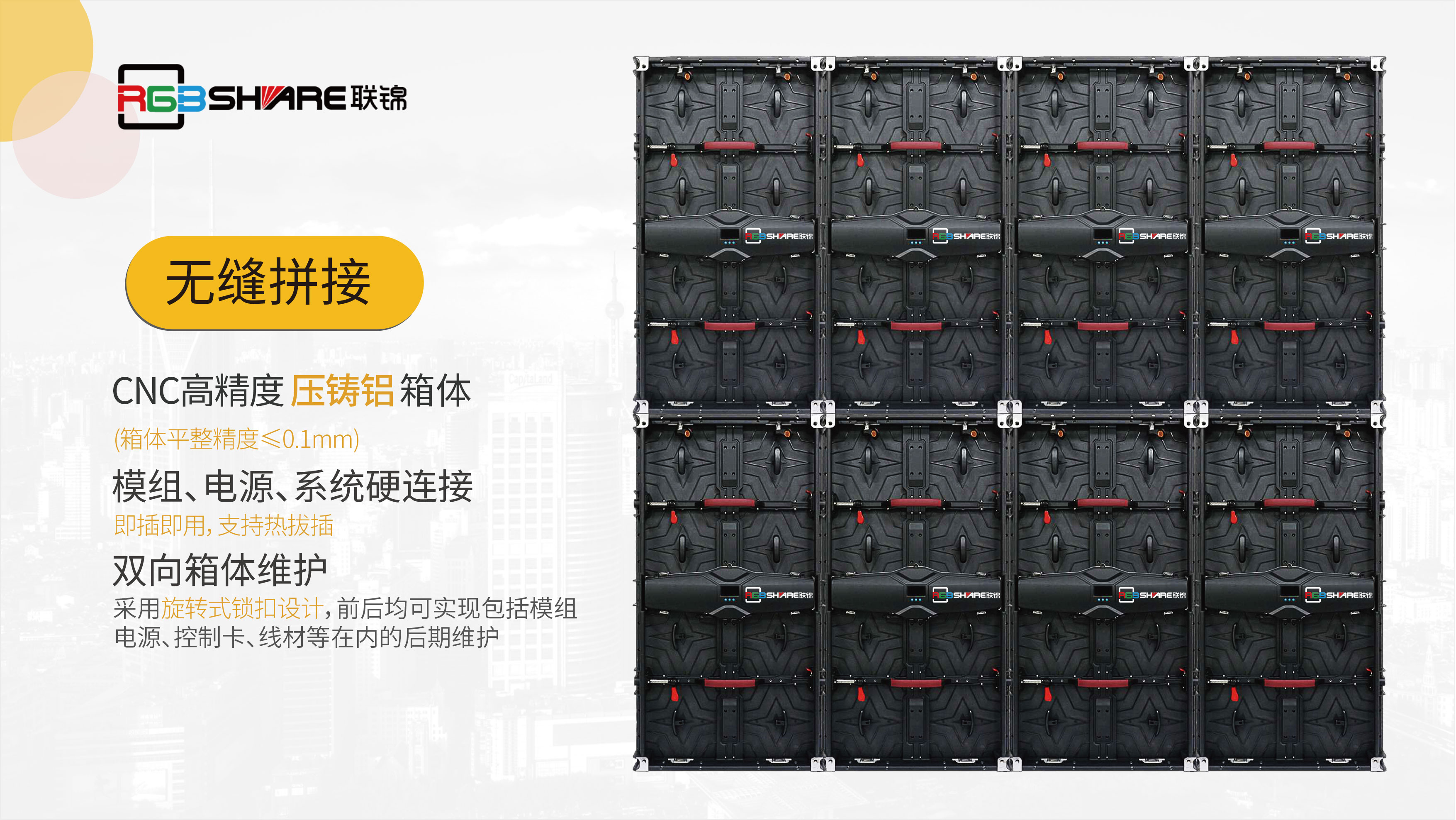 ?采用特殊連接鎖連接,整屏平整度和拼接縫小于0.1mm。