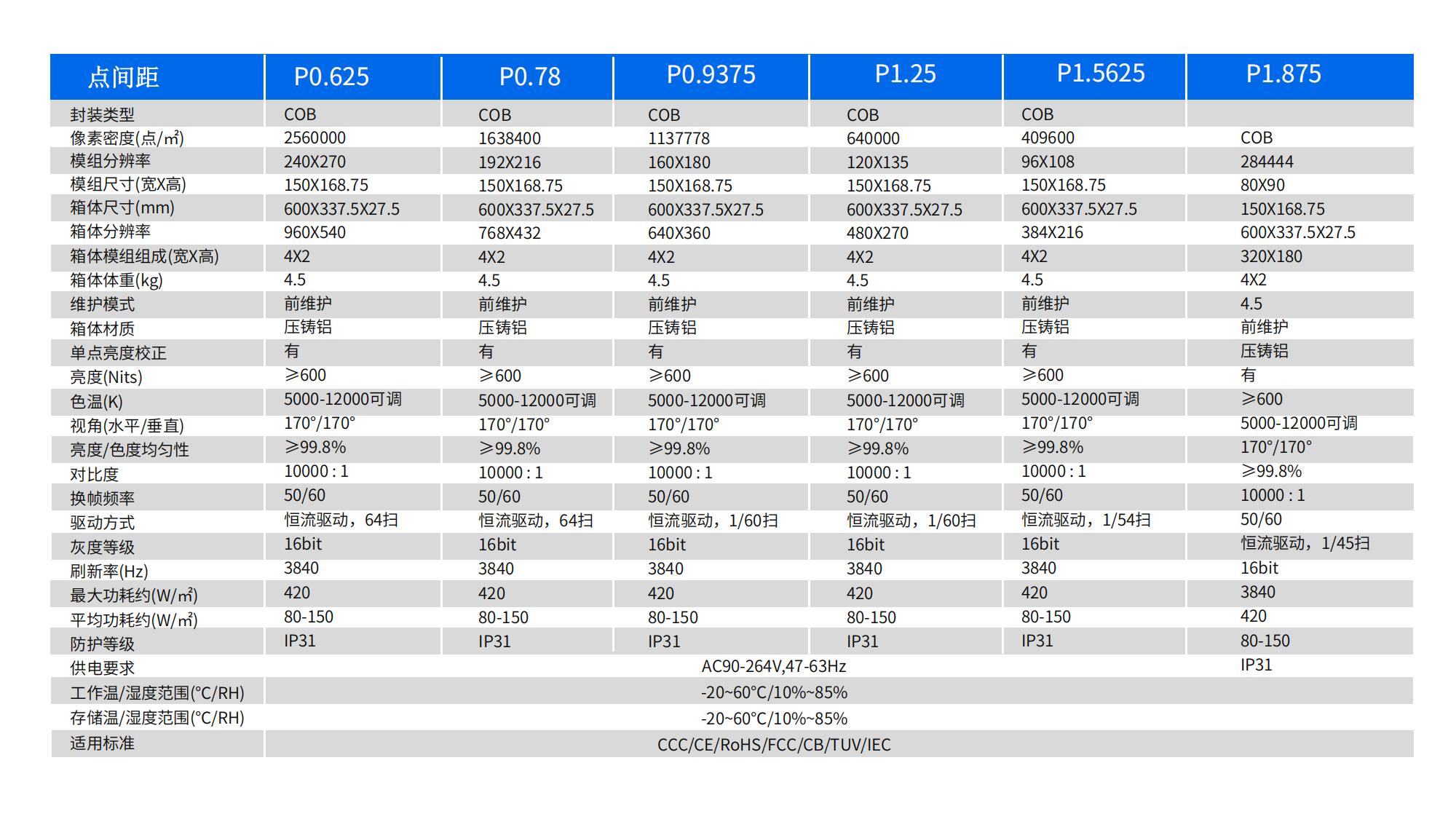 P0.625/P0.78/P0.9375/P1.25/P1.5625/P1.875