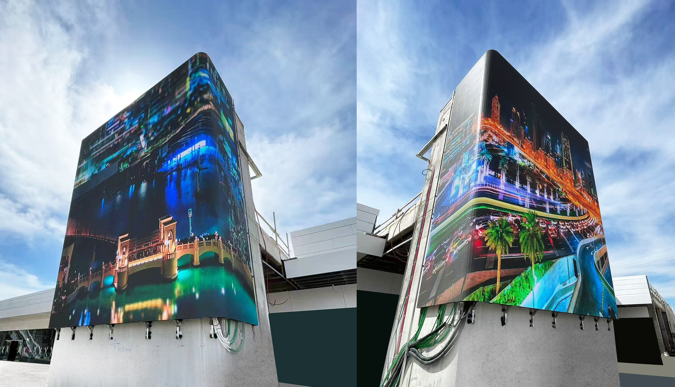 In the Middle Eastern city where high temperatures and sandstorms intertwine, an outdoor curved screen seamlessly int...