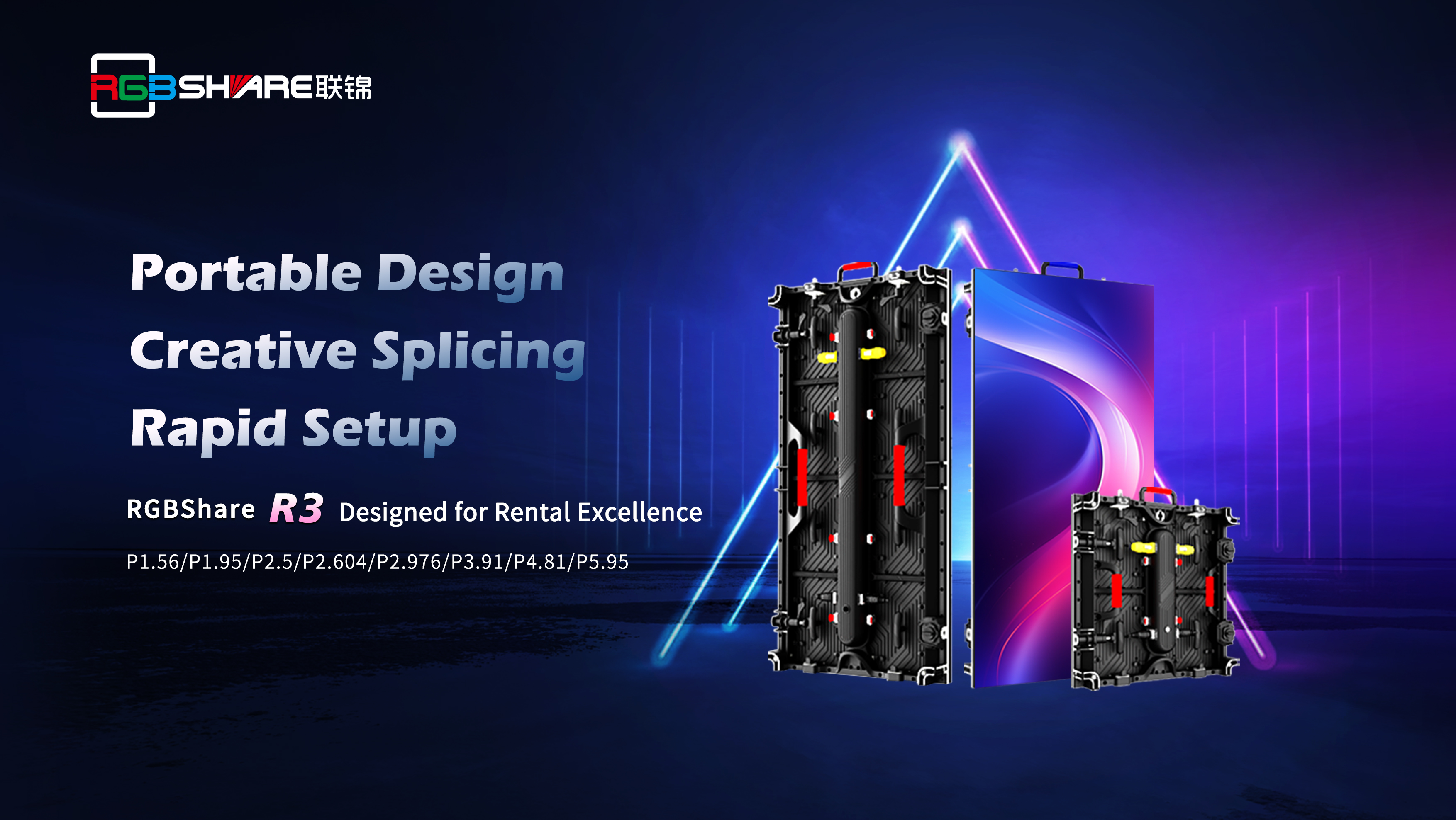 The Lianjin Optoelectronics R3 series rental display screen covers a full spacing product matrix from P1.56 to P5.95, accurately matching the diverse application needs of indoor and outdoor stage rental scenarios, providing rich and diverse display solutions for stage creative design. This series has two sizes of enclosures, 500x500mm and 500x1000mm. Through modular combination design, seamless interlocking is achieved, creating three-dimensional shapes such as right angles and cylinders, empowering multi-dimensional artistic expression in stage space.