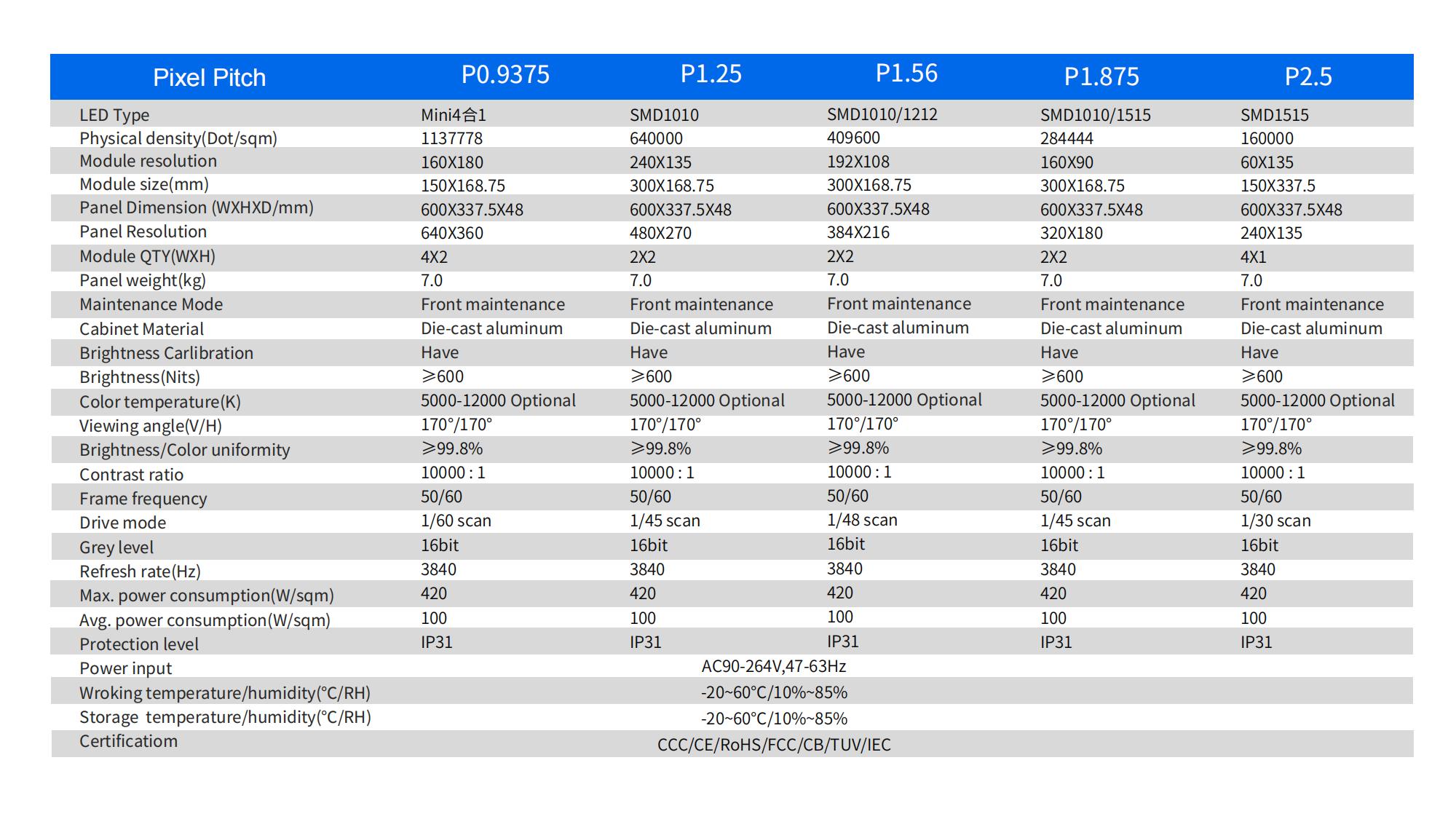 P0.9375 / P1.25 / P1.5625/P1.875 /P2.5