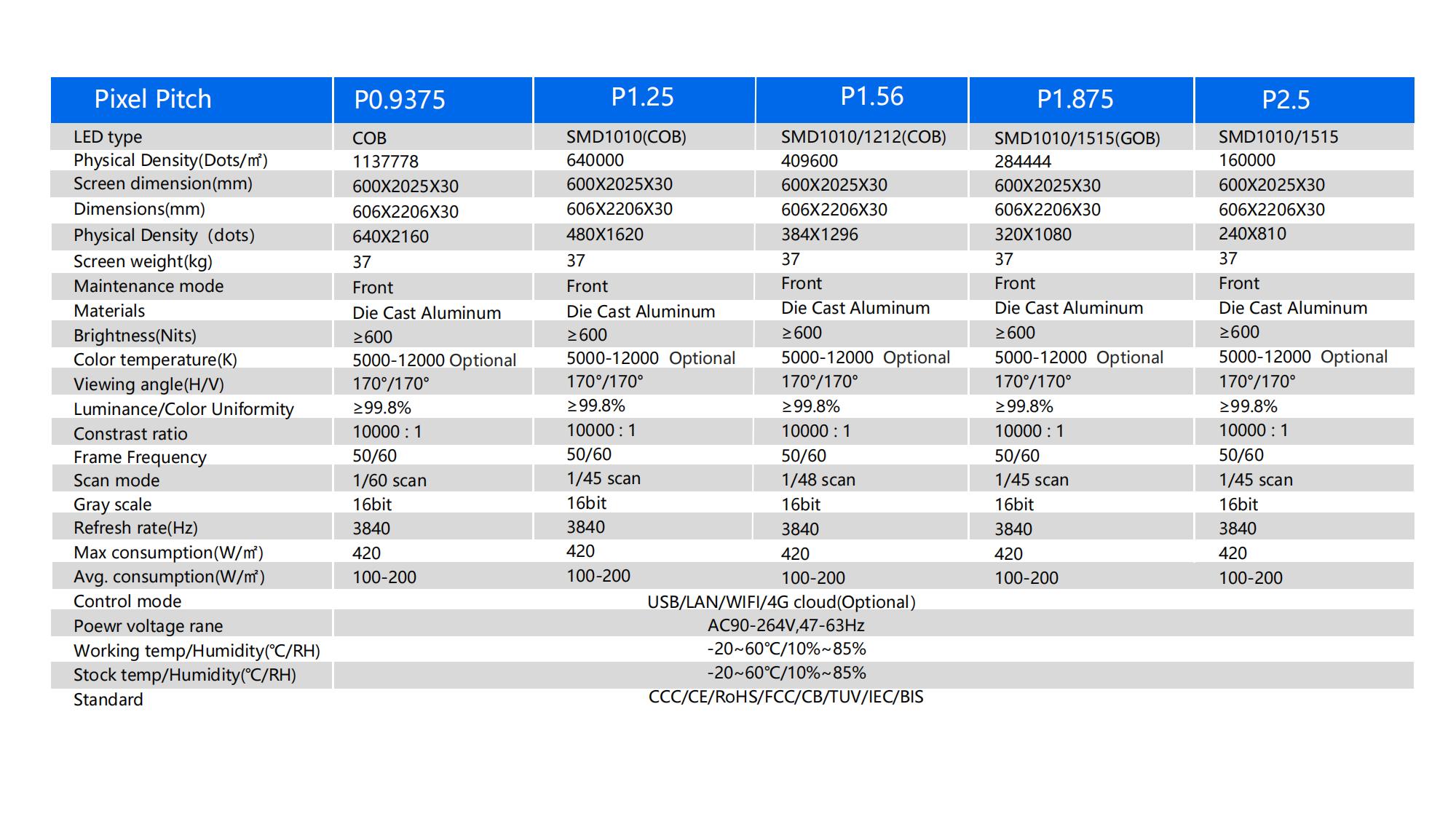 P0.9375/P1.25/P1.56/P1.875/P2.5
